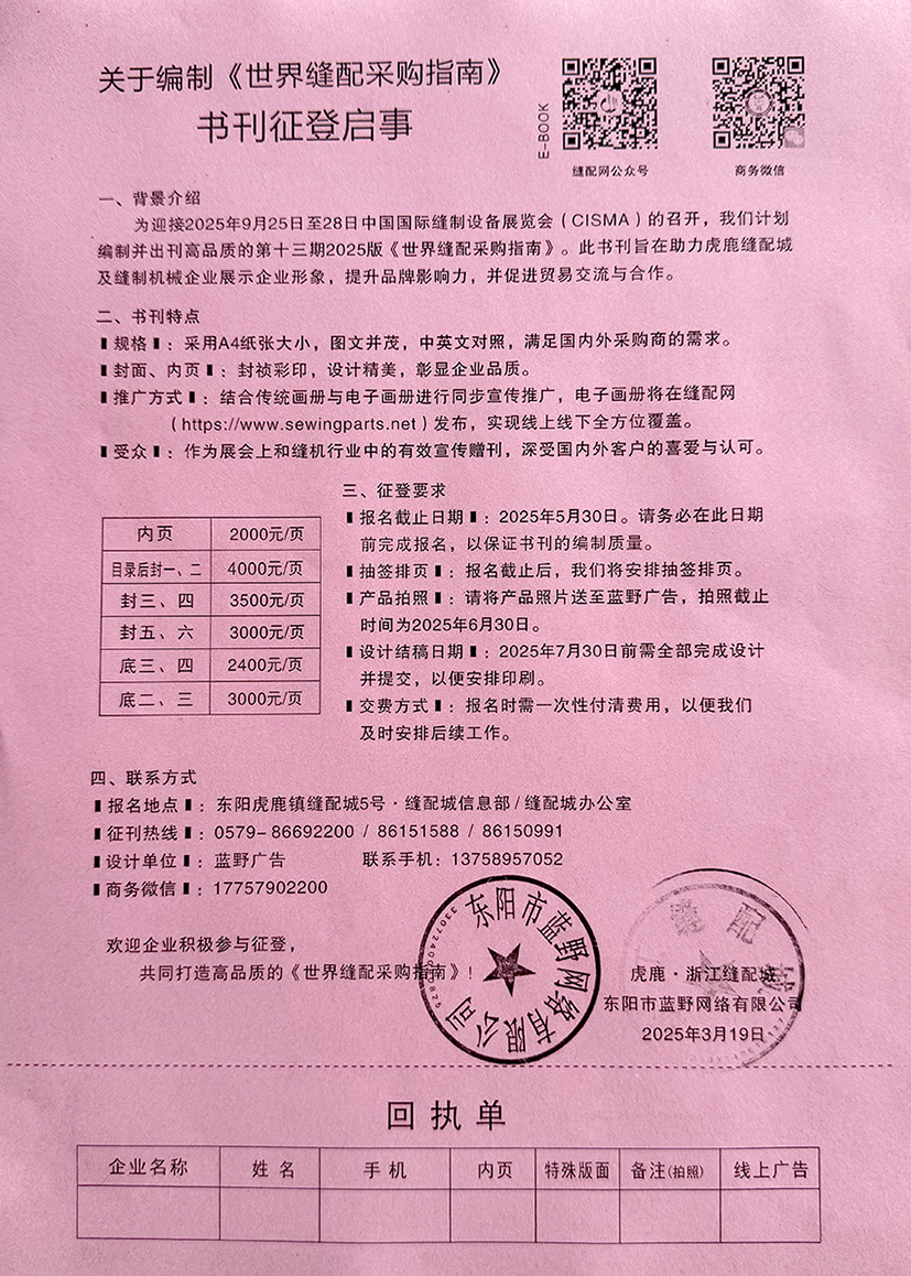 關(guān)于編制2025版《世界縫配采購(gòu)指南》 書刊,誠(chéng)邀您的加入!